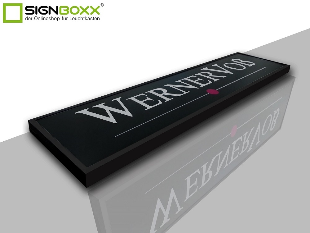Für Außenbereich wird nur eine Acrylglasscheibe verwendet wo auf Wunsch Digitaldruck oder Plottfolie draufgeklebt wird.