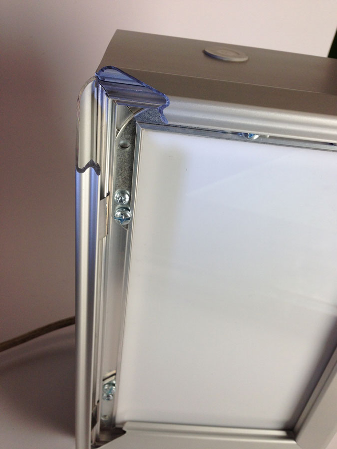 Das besondere an unseren Dia-Leuchtkästen ist der 32 mm (Click-) Klapprahmen, den man mit einem einfachen Handgriff auf allen vier Seiten aufklappen kann. Ideal, wenn man mal eben ein Motiv im Leuchtkasten austauschen möchte.