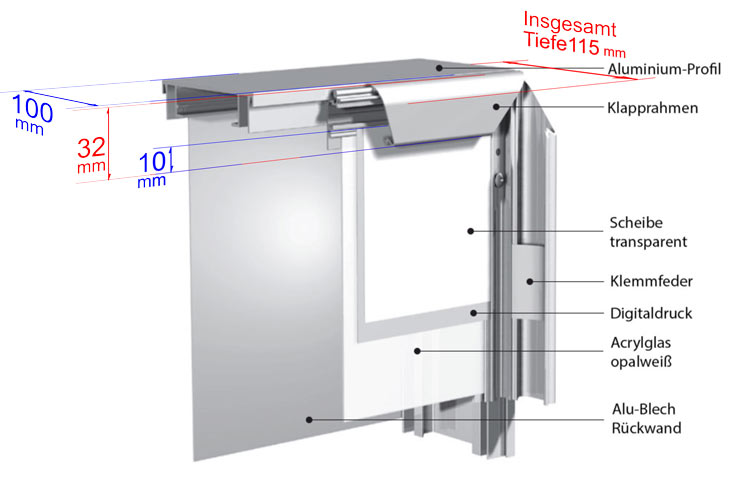 Profiltiefe: 10cm + 1,5cm Erweiterung durch den Klapprahmen.
