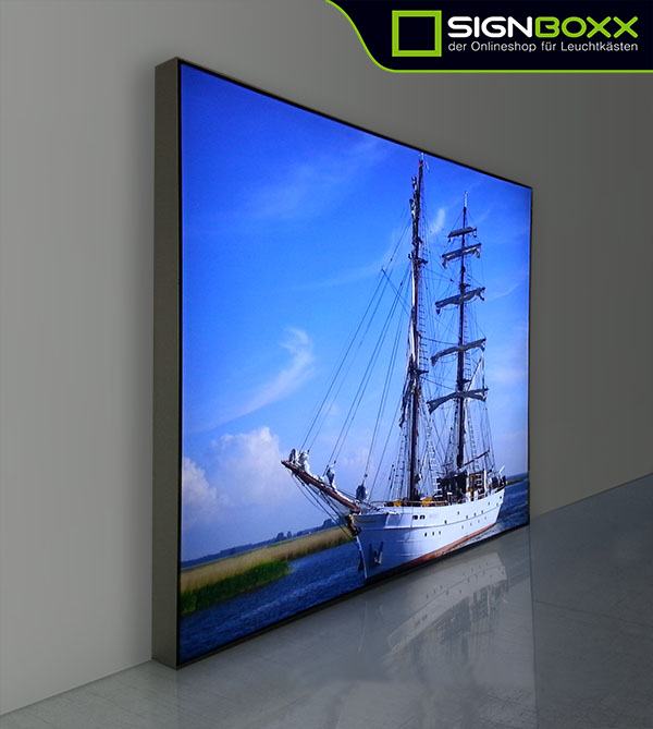 Der Textil-Leuchtkasten kann zerlegt verpackt werden oder fertig montiert geliefert werden. Ab einer Größe von 300 x 210cm kann es nur zerlegt geliefert werden.