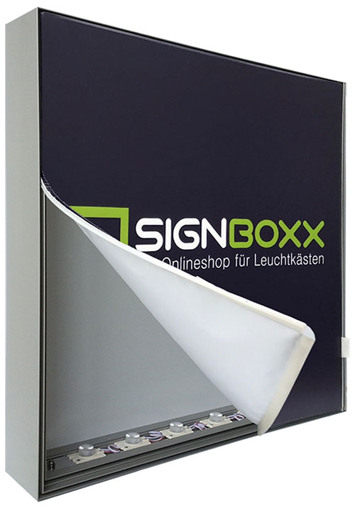 Konfigurieren Sie den LED-Leuchtrahmen Textil / Textil-Leuchtkasten mit Stoffbespannung System nach Ihren Wünschen und Anforderungen.