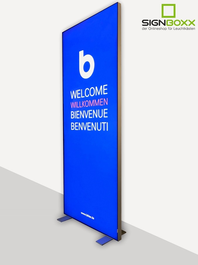 Sie können wahlweise mit oder ohne Standfüße, Abhängeset oder Wandhalterungen bestellen. Das Format entscheidet, wie die Halterungen angebracht werden müssen, um die Leuchtreklame im gewünschten Format verwenden zu können. Profiltiefe beträgt 8,5 cm.
