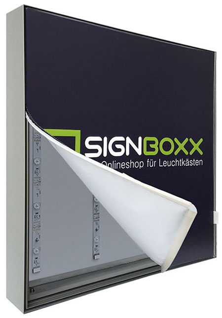 Konfigurieren Sie den LED-Leuchtrahmen Textil / Textil-Leuchtkasten mit Stoffbespannung System nach Ihren Wünschen und Anforderungen.