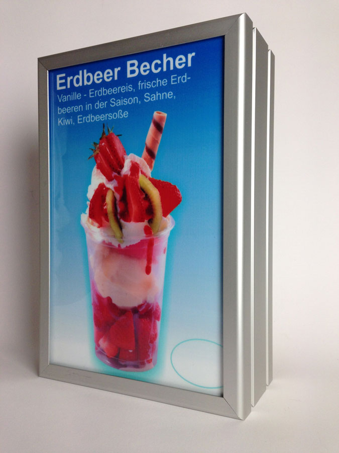 Wir stellen unsere doppelseitigen Leuchtkästen mit Öffnerprofil selbst her.