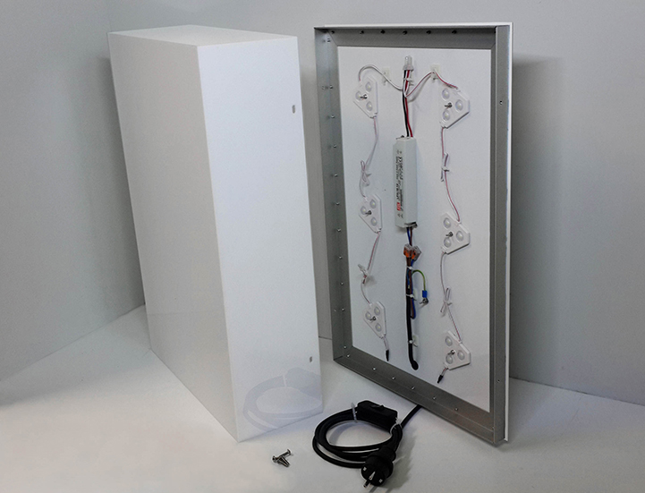 Für die Wandmontage werden keine speziellen Halterungen benötigt. Der LED-Leuchtkasten kann direkt mit der Rückwand (Aluverbund) montiert werden oder freistehend.