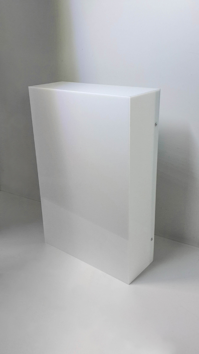 Standardmäßig liefern wir die LED-Leuchtkästen mit opal-weißem Plexiglas mit einer Stärke von 3-5mm (Stärke abhängig von der Größe des Vollacryl Leuchtkastens). Dieses Plexiglas ist bis zu 30% lichtdurchlässig und kann mit Beschriftungen oder Digitaldrucken beklebt werden.
