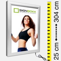 Super flacher LED Leuchtrahmen zweiseitig mit Klapprahmen für Innenanwendung - LED Rahmen Tiefe 30mm. Konfigurieren Sie Maße, Lackierung und Halterung vom LED Leuchtrahmen nach Ihren Wünschen. Laden Sie Datei hoch, die Sie auf die hochwertige Backlit-Folie für Dias drucken lassen möchten. Unsere LED Leuchtrahmen / Bilderrahmen sind Made in Germany und nur von bester Qualität.