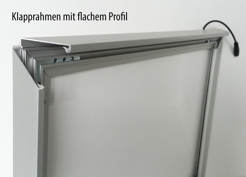 Flacher LED Leuchtrahmen einseitig mit Klapprahmen und 22mm Tiefe - nur für Innenanwendung.