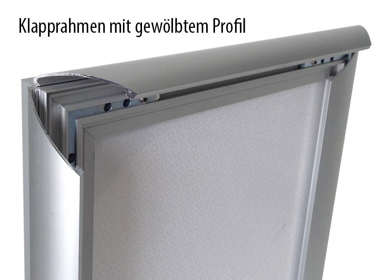 Standardmäßig ist das Profil silber eloxiert. Mit dem Eloxalverfahren gewinnt der Klapprahmen ein edles Aussehen und einen optimalen Schutz vor Kratzern und Korrosion.